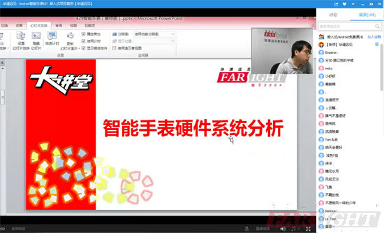 2015年4月29日,华清远见讲师名家大讲堂(以下简称名家大讲堂)在线讲座系列之《Android智能手表DIY》圆满开讲,得到了众多技术爱好者的热烈好评! 开源硬件进入公众的视野还是只有很短暂的时间,但伴随智能硬件的热潮,比如可穿戴设备、物联网、智能家居、智能医疗等,嵌入式开发技术也备受关注,人才需求也急剧攀升。华清远见一直致力于嵌入式技术的宣传与推广,欢迎更多有志于开发智能硬件、可穿戴设备、物联网、智能家居的人,加入我们的技术普及活动及培训活动。 本次讲座结合华清远见的智能硬件教学平台FarSight Watch,讲解手表关键技术结构,教你打造一款自己的智能手表。 本期讲座是由华清远见北京中心优秀讲师秦老师主讲,秦老师精通linux下的c语言应用程序开发、ARM处理器体系结构、计算机接口技术、拥有多年的自动化设备开发经验,项目经验丰富,是华清远见受学生欢迎讲师之一。本次讲座分为智能手表概述、华清远见智能手表功能介绍、智能手表硬件系统分析智能手表软件系统分析四部分。 一、智能手表概述 智能手表,是将手表内置智能化系统、搭载智能手机系统而连接于网络而实现多功能,能同步手机中的电话、短信、邮件、照片、音乐等。目前市面上的智能手表可大致分为两种:一种是不带通话功能的另一种则是带通话功能的。