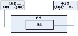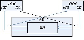 管道是基于文件描述符的通信方式,当一个管道建立时,它会创建两个文件描述符fd[0]和fd[1],其中fd[0]固定用于读管道,而fd[1]固定用于写管道,如图1所示,这样就构成了一个半双工的通道。